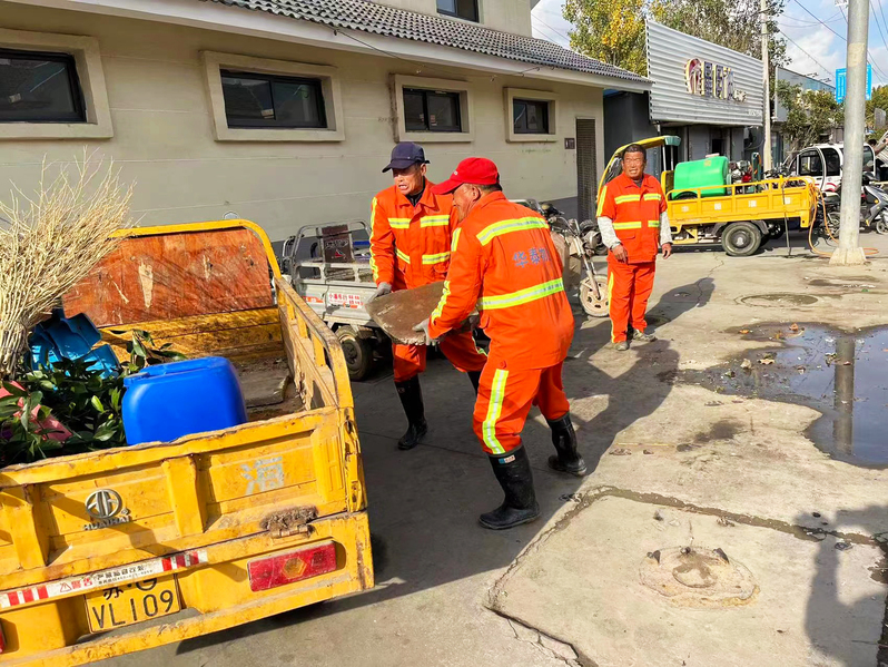 他们是一群“突击战士”。托运垃圾桶、清理背街小巷杂草、清理河道垃圾、排水泄洪、环境消杀......不论严寒酷暑,哪里有需要,他们就在哪里。他们就是“环卫突击队”成员江尧根、杨文山、徐志庭。他们的平均年龄在63岁,他们不怕苦、不怕脏。夏季烈日当头下,他们在清理河道垃圾、托运垃圾桶,冬季严寒风雪下,他们在清理背街小巷。江尧根告诉笔者,“我从46岁起从事环卫事业,到现在有17年了,能守护农场环境卫生,我觉得很光荣,很有意义。”