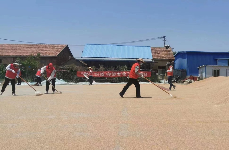 面对6月11日即将来临的降雨天气,东辛紧急吹响雨前颗粒归仓“集结号”。各党支部充分发挥战斗堡垒作用,与挂钩生产区联合开展“党旗飘扬 守望麦收”主题党日活动,把党支部搬到田间地头,让党旗在田间飘扬。党员佩戴党徽,亮出身份做表率,走入晾晒场,用实际行动解决抢时收割、烘干晾晒等实际困难,“三夏”火热实践成为了开展主题教育的生动“课堂”和实践“基地”。