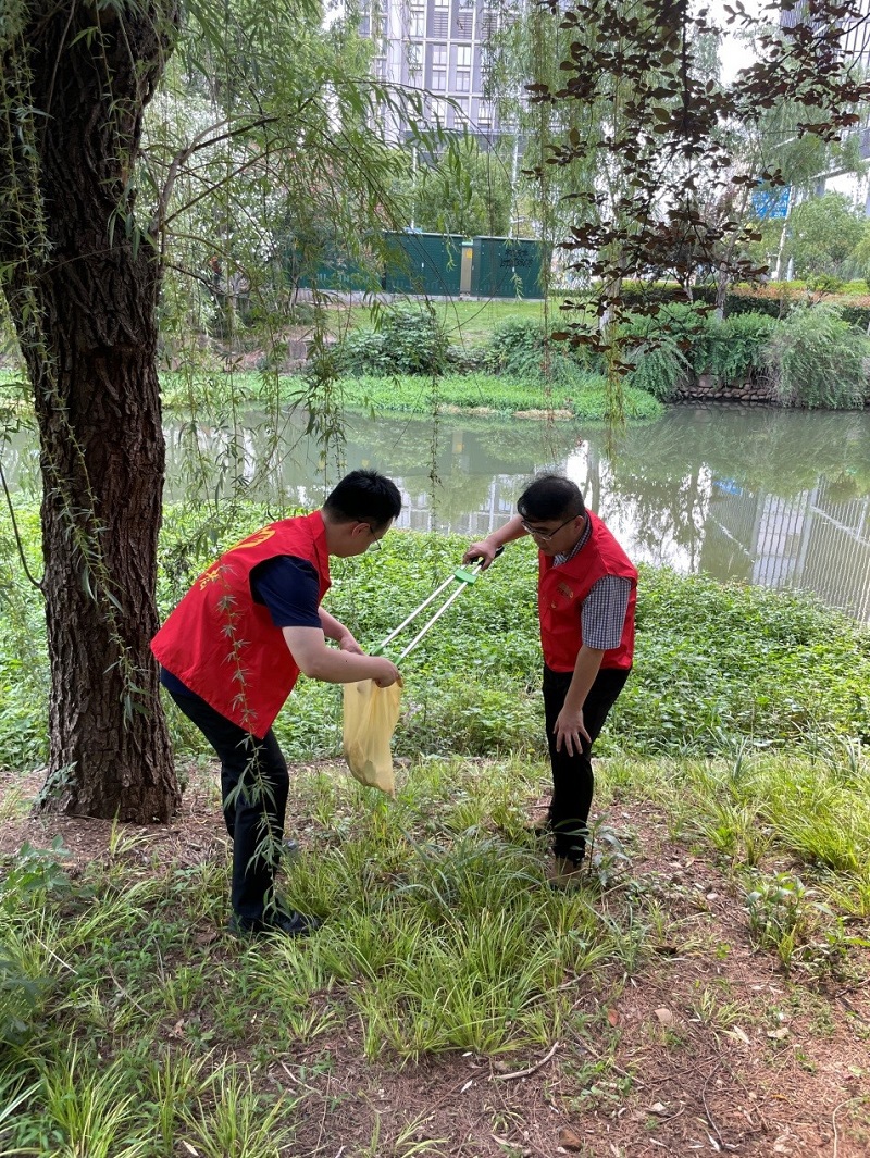 在中胜社区辖区内,来自沙洲街道机关、社区及苏垦农发总部一支部的党员和志愿者们共同开展了清理生活垃圾志愿服务,在道路两旁、小区绿地、河道边、市民广场等地开展垃圾清理,并向身边群众宣讲保护自然生态、保持健康生活的重要性。“自创建成功全省文明社区以来,我们持续开展环境整治专项活动,旨在为社区群众营造一个美丽、和谐的居住环境”沙洲街道中胜社区党委副书记张洁告诉参加活动的志愿者们。