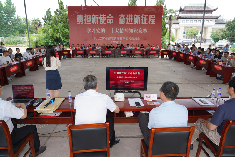 为持续推动深入学习宣传贯彻习近平新时代中国特色社会主义思想和党的二十大精神,切实做到学思用贯通,知信行合一,7月4日下午,弶港农场组织开展“勇担新使命 奋进新征程”学习党的二十大精神知识竞赛活动。来自各单位部门的19支队伍57名选手参加本次竞赛,全场管理人员、部分居民到场观看。
