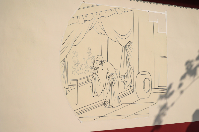 9月7日,在云台农场普山路街道上,工作人员正在绘制“二十四孝”文化墙,一幅幅生动形象、图文并茂的文化宣传内容引人入胜,不仅扮靓了场域环境,也成为云台农场引领文明新风的重要手段。