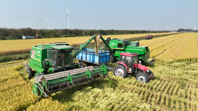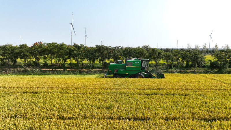 “开镰了!丰收了!”10月17日上午10时,一台台联合收割机驶向苏垦农发新洋分公司新北生产区5大队,金黄的水稻被大型机械收入“囊”中,新洋5.3万亩水稻机收作业正式拉开序幕。