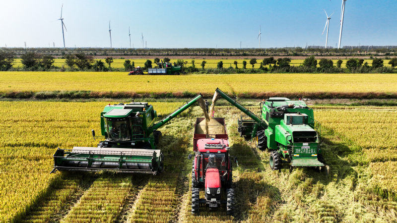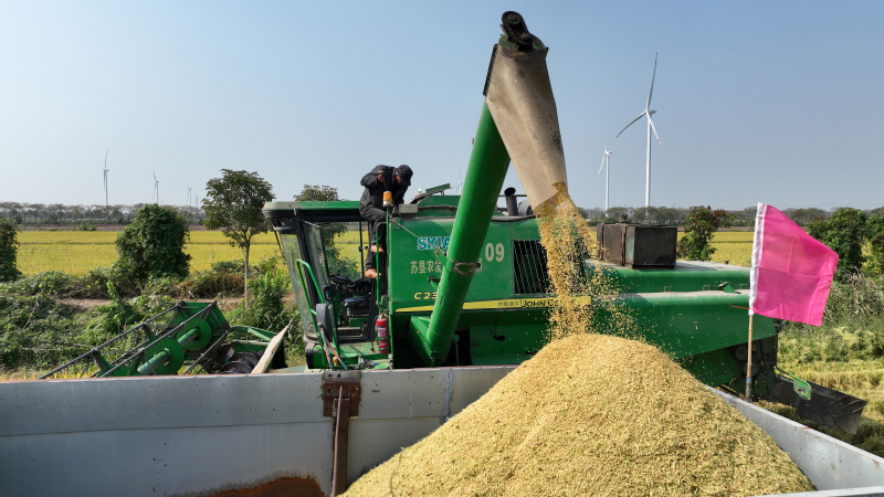收割现场,苏垦农发新洋分公司严格收割质量监督,把机械减损作为粮食增产的重点,加大收割质量检查力度,减少收割损失,实现秋粮颗粒归仓。“我们密切关注天气情况和水稻成熟度,统筹安排,坚持质量第一,进度第二,努力做到成熟一块收割一块,稳步推进收割进度。”农业中心负责人介绍。苏垦农发新洋分公司立足“前期‘拣’收、中期‘稳’收、后期‘抢’收”的原则,充分利用秋收早期温度高,有利晾晒、烘干的条件,适时收、晒、烘,为秋播及时腾茬,确保11月6日前完成秋播田块收割任务。
