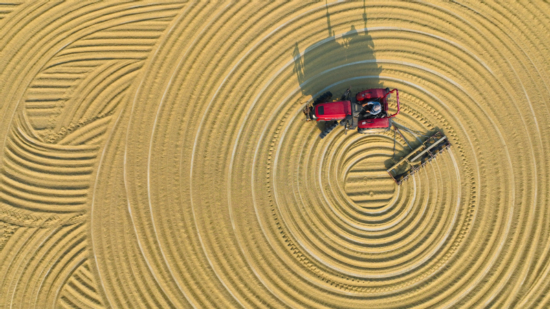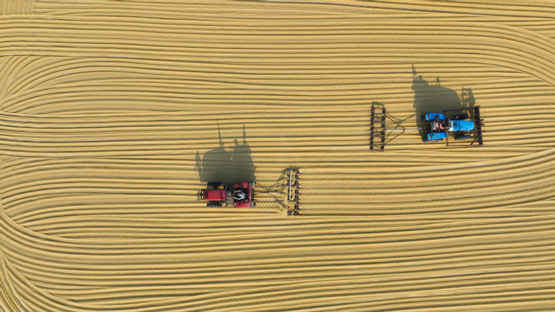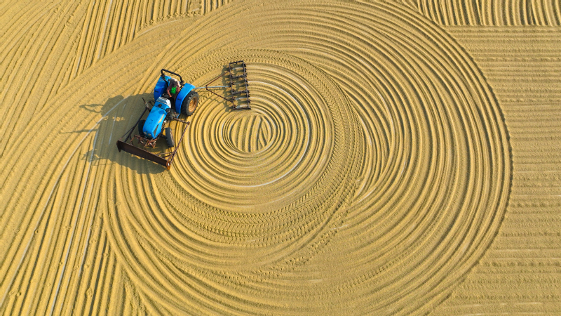 10月18日,在苏垦农发新洋分公司高标准粮食晒场,工人们正在用机械翻晒新收获的水稻,呈现一派繁忙的丰收景象。近年来,苏垦农发新洋分公司深入实施“藏粮于地、藏粮于技”战略,始终把粮食安全放在重要位置,加快推进高标准农田建设,全力提升粮食生产效率和水平。