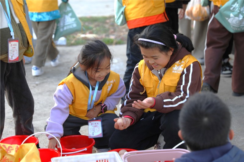 近日,宝应湖农场“扬子晚报小记者现代化农业基地”在大会堂揭牌。随后60余名小记者先后前往宝应湖农科所、农场公司新时代文明实践所、农场公司杜仲林生态农庄参观体验。图为2名扬子晚报小记者欢快地将捡拾的鸡蛋小心翼翼地放入篮子中。