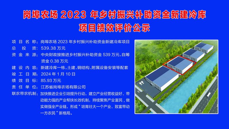 岗埠农场2023年乡村振兴补助资金新建冷库项目绩效评价公示