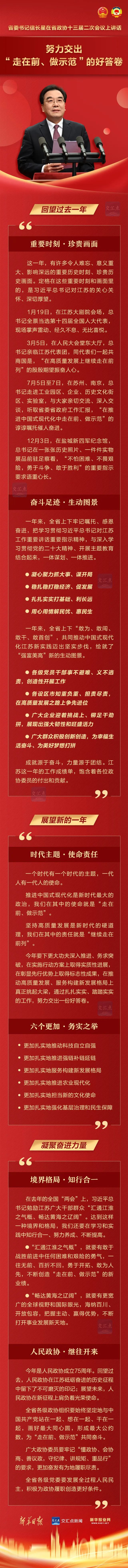 江苏省委书记信长星在省政协十三届二次会议上讲话 努力交出“走在前、做示范”的好答卷