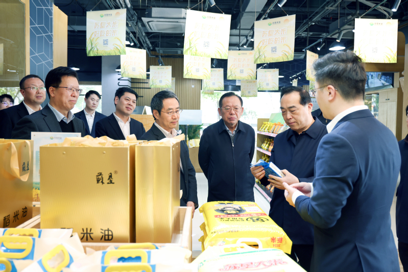 王荣平一行来到苏垦尚膳门店,了解江苏农垦粮油产品和精深加工食品,调研科技创新、智慧农业、农产品全程质量追溯等工作情况;在江苏农垦展示厅,详细了解农垦创业及改革发展历程。