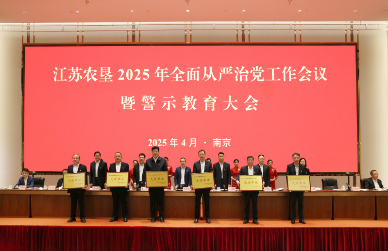会议集中观看了警示教育片,通报了下属企业两起经营风险事件相关人员处理决定和2024年度集团纪委查处的典型案例,表彰了2023—2024年度江苏农垦宣传思想文化工作先进单位、2024年度江苏农垦纪检工作先进单位、进位争先单位及先进个人。各单位党组织书记向集团党委书记递交了《全面从严治党责任书》和《意识形态工作责任书》。苏垦农发、苏垦米业、新洋农场、新曹农场、江心沙农场、中山大厦等6个单位作交流发言。