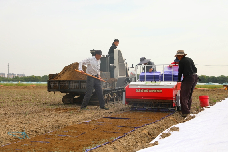 连日来,苏垦农发江心沙分公司抢抓晴好天气进行流水线育秧作业。作业现场,随着自走式育秧机的前行,工人们分工协作,辅助撒种、覆土和盖膜等作业,大幅提升育秧质效。
