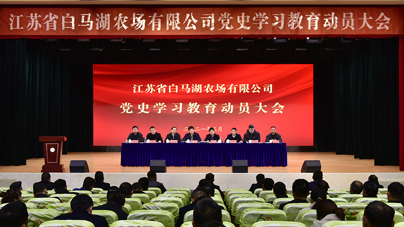 根据集团公司党委党史学习教育实施方案要求和党史学习教育领导小组办公室安排,3月18日上午,白马湖农场公司召开党史学习教育动员大会,深入学习贯彻习近平总书记在全国党史学习教育动员大会上的重要讲话精神,认真贯彻落实中央和省委、省国资委党委及集团公司党委部署,对农场公司开展党史学习教育进行动员布置,号召广大党员干部学史明理、学史增信、学史崇德、学史力行,做到学党史、悟思想、办实事、开新局,以昂扬姿态奋力推动经济社会高质量发展,以优异成绩迎接建党一百周年。