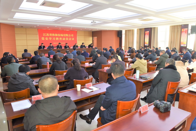 3月18日上午,淮海农场有限公司召开淮海领导班子全体成员、社区主任助理、各基层党组织负责人,副科级以上管理人员,驻场单位负责人和农场公司党史学习教育办公室全体人员参加的党史学习教育动员会议,深入学习贯彻习近平总书记在党史学习教育动员大会上的重要讲话精神,认真贯彻落实中央、省委、集团公司党委党史学习教育各项要求,对全场党员干部和管理人员进行党史学习教育动员部署。