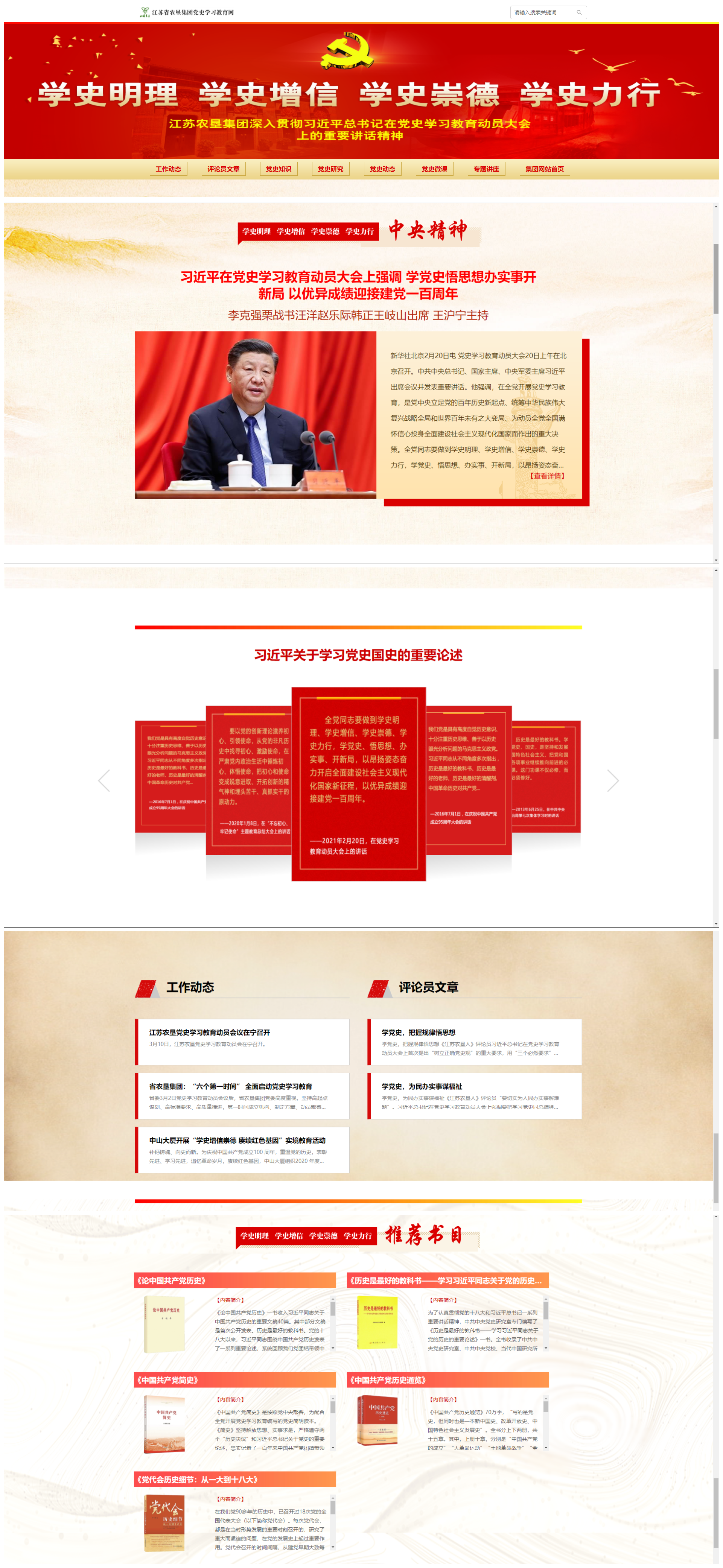 党史学习教育活动开展以来,江苏农垦在充分运用好电视、报刊、微信公众号、调频广播、电子显示屏、文化长廊等宣传载体的基础上,注重创新开发网站载体功能,为充分发挥其方便快捷、信息量大、互动性强等特点,开发设立了党史学习教育网站,网站下设工作动态、评论员文章、党史知识、党史研究、党史动态、党史微课、专题讲座等7个栏目,搭建起党员学习、互动交流的平台。