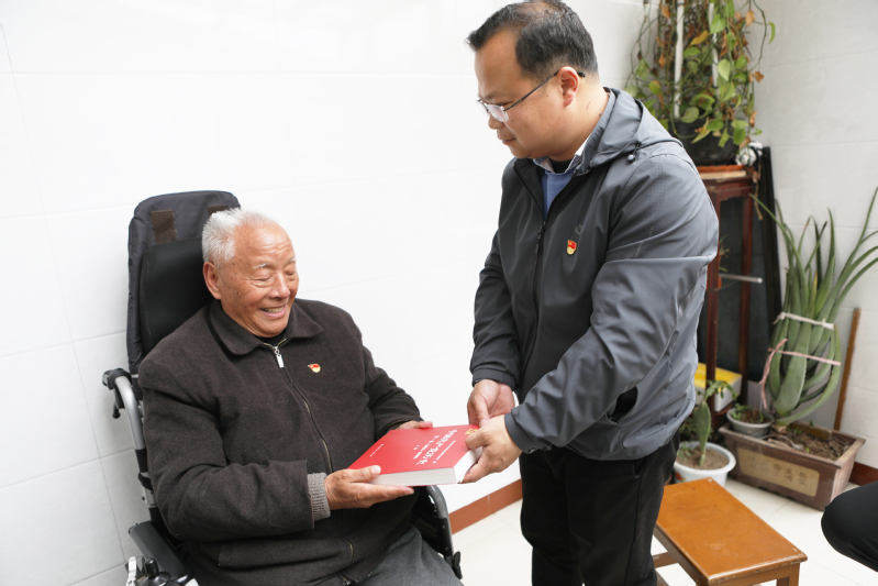 4月12日下午,新洋在前期开展“送学上门”活动的基础上,再次组织党员志愿者为行动不便的离退休老党员开展党史学习教育“送书上门、送学上门”活动,为他们送上党史学习资料,并与他们一起学习党史知识,推动党史学习教育“不落一人”。