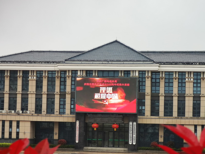 为庆祝中国共产党成立100周年,中共中央党史和文献研究院、国家广播电视总局、中共江苏省委联合摄制的百集微纪录片《百炼成钢:中国共产党的100年》,4月22日上午在淮海农场农场有限公司职工文化活动中心楼前的大屏上开始播出,目前每天以播放三集的速度进行更新,以早中晚人流量相对高峰时滚动播出,让农场的职工居民在户外行走、健身或休闲时,也能观看到微纪录片《百炼成钢》,感受到中国共产党的辉煌成就、成功经验、光荣传统、革命精神。