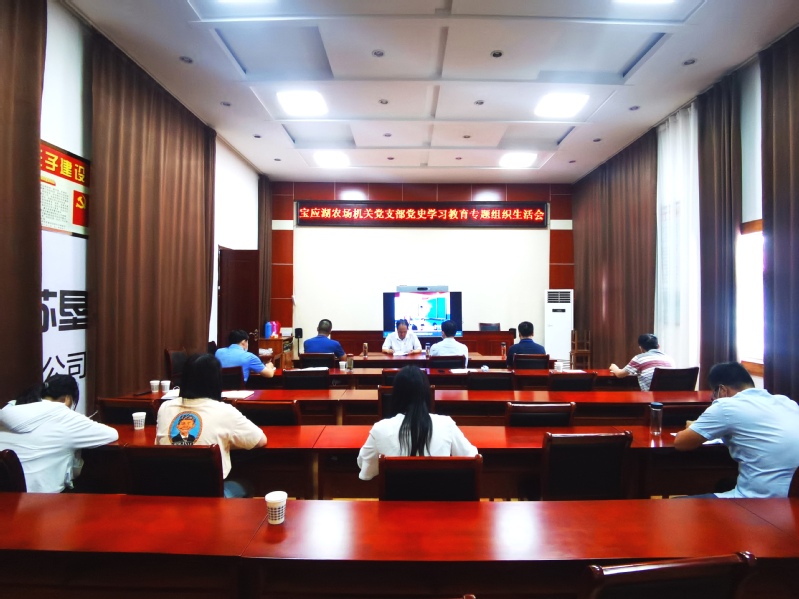 7月29日,宝应湖农场机关党支部召开党史学习教育专题组织生活会。农场公司总经理王林、纪委书记胡双、副总经理周爱国以普通党员身份参加,深入学习领会习近平总书记在庆祝中国共产党成立100周年大会上的重要讲话精神,围绕“学党史、悟思想、办实事、开新局”主题,交流学习体会,严肃认真开展批评与自我批评,深刻剖析原因,明确整改措施,切实把党史学习教育成果融入工作实践,更好凝聚起以史为鉴、开创未来的奋进力量。