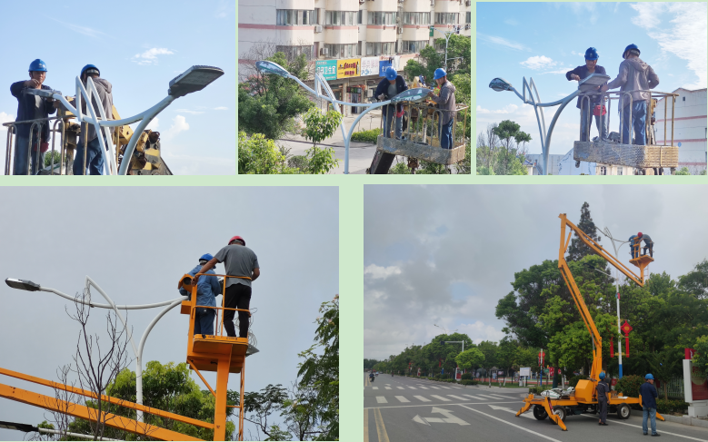 通过与供电公司了解,LED灯是半导体二极管的一种,可以把电能转化成光能。而且它比传统光源更节能,寿命长,亮度也比传统节能灯亮。这也是淮海农场公司继前两年推行的太阳能辅助深夜照明便民举措后,又一次能农场亮化工程的提升。图为射阳凯惠电力公司员工正在更换新能源灯具时的镜头。