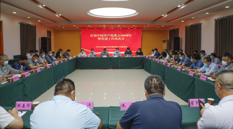 农场公司党委书记韩中书在讲话中表示,今年是中国共产党成立100周年,隆重热烈庆祝建党百年华诞,是全面贯彻落实习近平新时代中国特色社会主义思想的重要举措,是党和国家政治生活中的大事。根据党史学习教育要求及年度党建工作安排,东辛召开庆祝中国共产党成立100周年暨党建工作座谈会,主要目的是进一步学习领会习近平总书记“七一”重要讲话精神,推动党史学习教育学在深处、干在实处,同时总结交流党建工作经验,提出既有思想理论高度,又有实践指导意义的思路举措。他指出:今年以来,在全场各级党组织和广大党员干部的共同努力下,东辛各项事业都取得了长足进步,上半年农场公司和农发东辛分公司共计实现国有营业收入7.31亿元,同比增长20.83%;实现国有利润1.57亿元,同比增长14.82%。