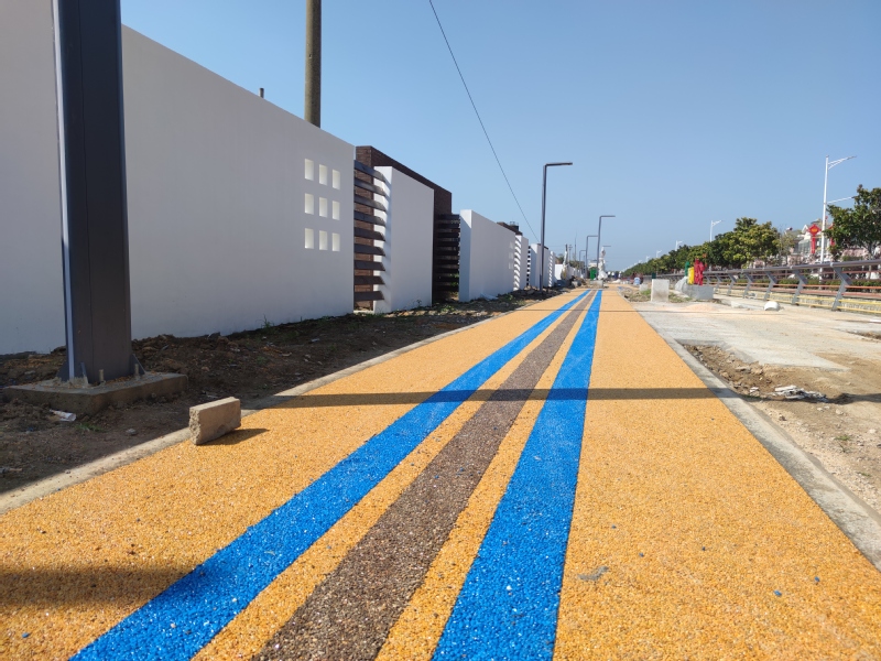 随着体育健康文化深入人心,越来越多的职工居民十分关注农场公司党委这一惠民的建设项目,纷纷参与到农场公司打造的健身运动平台行列中来。而健身步道作为农场公司党委为民办实事的项目工程,此建设任务不仅满足广大职工锻炼的需求,更是提升了美丽农场的创建水平。图为健身步道项目工程施工人员正在进行健身彩色步道的铺设工作。