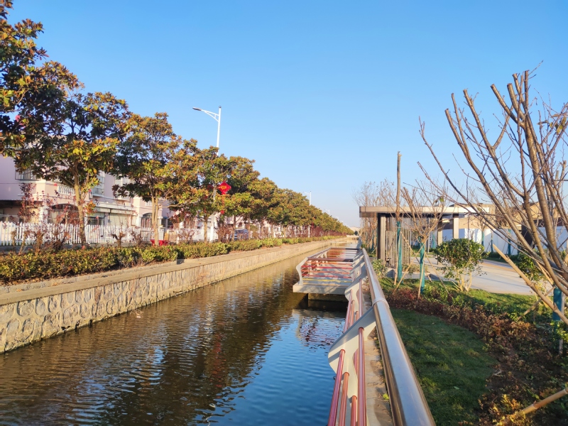 “没想到农场也建起了健身步道,而且步道两侧还栽种了许多绿化苗木和花草,还配置了许多景观小品、休息坐椅、亲水平台,生活在农场真是太幸福了。”居住在农场神禾路别墅区的张老汉望着河对岸清新的环境感慨地说道,“没建这个步道前,其间要么是堆积的杂物、鸡鸭棚或是种植的庄稼,破败的状况让人不忍直视。现在好啦,新砌的围墙将步道与居住区隔开,道路是彩色道路,两边还装了别致的路灯,不同的树木自成一体,大家茶余饭后就可以在步道上边散步边聊天了。”