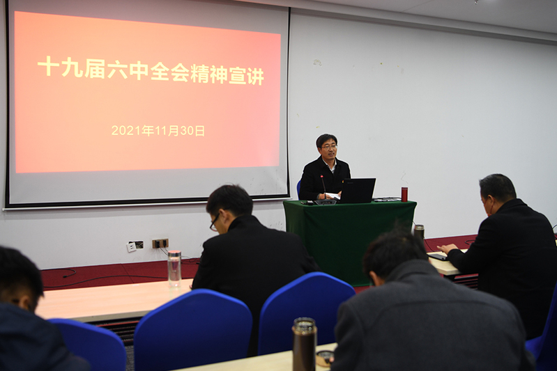 朱明亮从党的十九届六中全会的基本情况、深刻认识总结党的百年奋斗重大成就和历史经验的重大意义等方面,对全会精神进行了深入剖析和解读,帮助大家全面领会党的十九届六中全会思想精髓。
