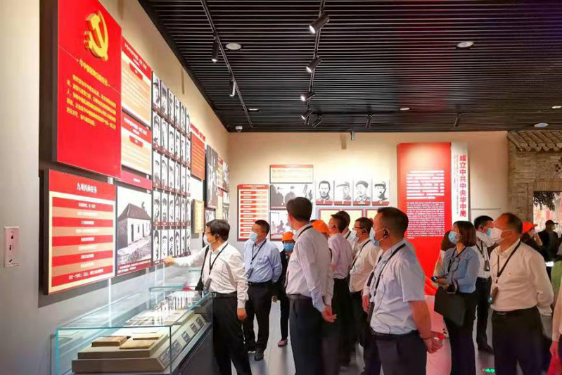 探寻场外红色资源。公司党委利用临近的红色资源开展实景学习。滨海县正红镇学习“五卅运动”精神,中心组成员到盐城新四军纪念馆学习“铁军精神”,党员骨干赴贵州学习“遵义会议精神”,学教办到陕西延安学习“南泥湾精神”;组织250多名党员、管理人员赴南京参观“百年征程 初心永恒”中国共产党江苏历史展;开展“跟着习近平总书记在江苏的足迹学党史”活动,学习贯彻总书记视察江苏重要讲话指示精神。通过访学红色资源,缅怀革命先烈、追寻先辈足迹,学习中国共产党人系列精神,推动党史学习教育走深走实。挖掘场内红色资源。利用临海农场陈列馆、临海农场公园暨党史、新中国史教育基地、爱国主义教育基地等红色教育阵地,建红色文化“现场”课堂,每周“红色电影”放映活动,丰富学习教育。